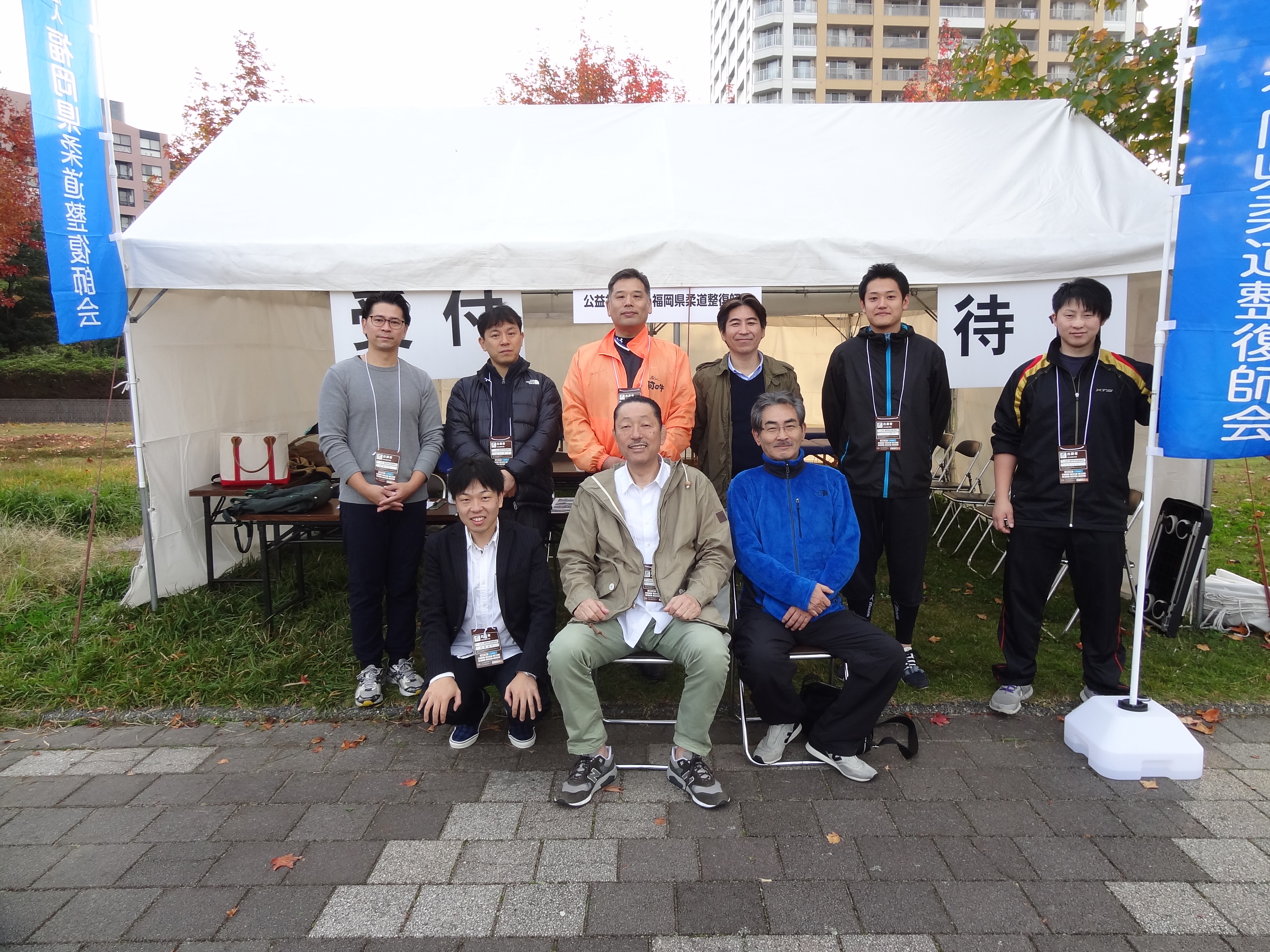 本会の救護活動は、車いす競技、ファンランのゴールとなる福岡市早良区百道浜の福岡市博物館前広場とフルマラソンゴールとなる糸島市志摩中央公園で行われました。